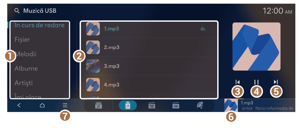 Indică numărul de fișiere muzicale pentru redare și secvența muzicii redate în prezent.