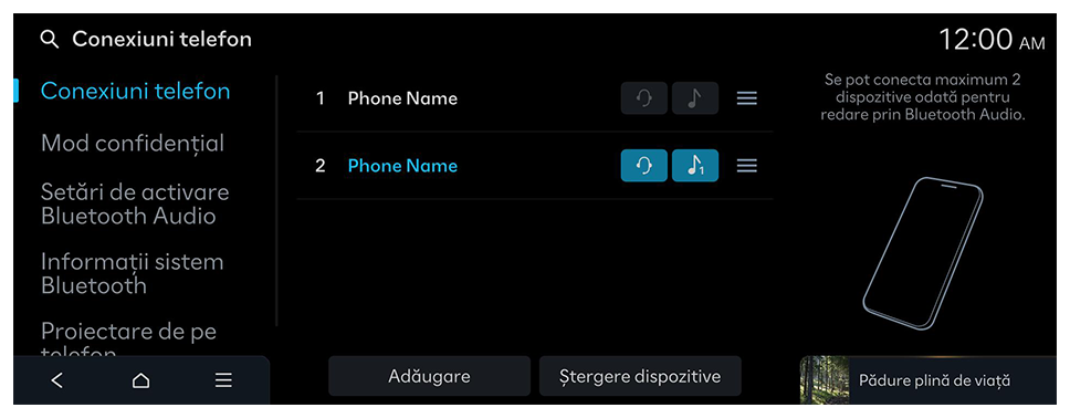 - Dacă folosiți navigația de pe telefonul mobil prin proiecția telefonului, sunetele din funcția media a sistemului și navigație vor fi redate prin difuzoarele vehiculului. Dacă ajustați volumul în timp ce sunt redate ambele sunete, sunetul aplicației de navigație va fi ajustat primul.