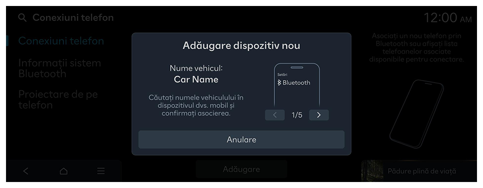 - Numele dispozitivului Bluetooth al sistemului poate fi găsit în fereastra Adăugare dispozitiv nou afișată.