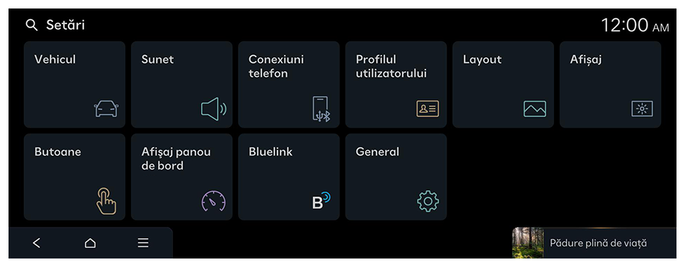 pe ecran sau apăsați butonul [SEARCH] de pe panoul de control, introduceți un termen de căutare și selectați elementul de rulat. - Setările disponibile pot varia în funcție de modelul și specificațiile vehiculului.