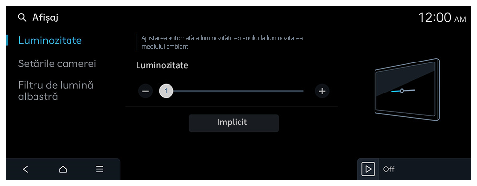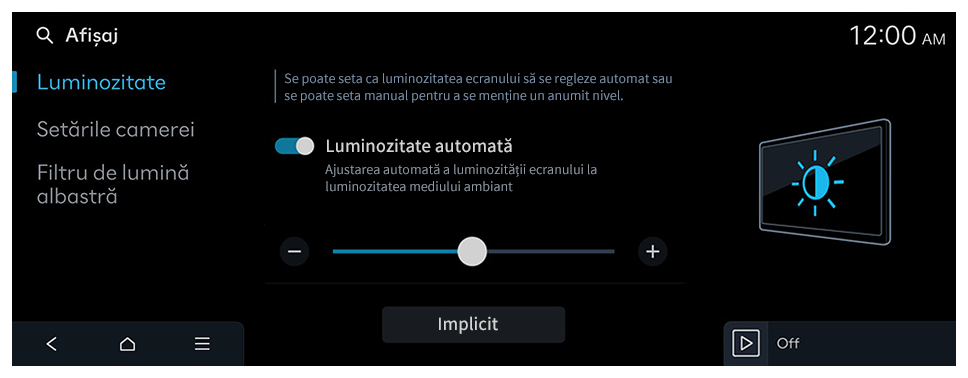 - Pentru a reseta toate setările de luminozitate a ecranului la valorile implicite, apăsați Implicit.
