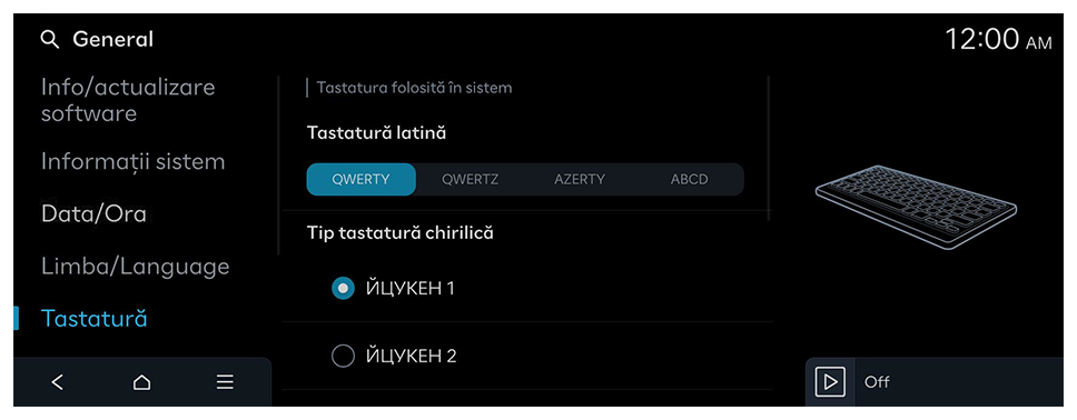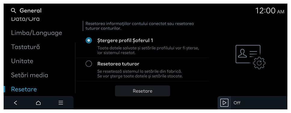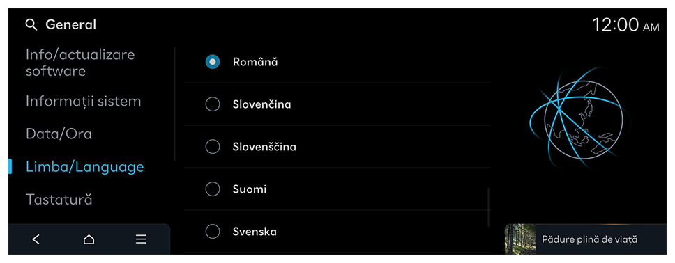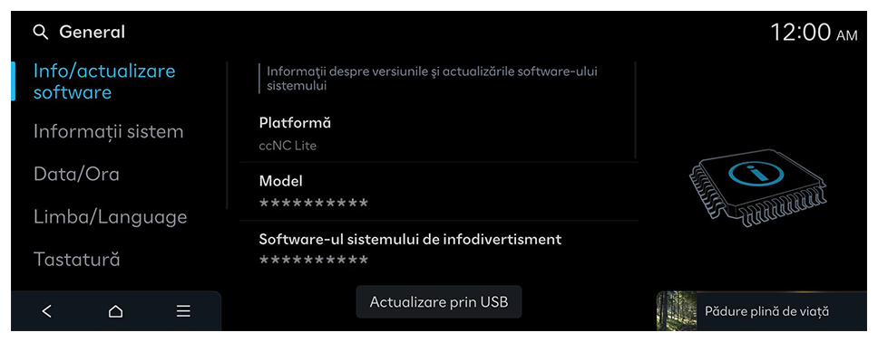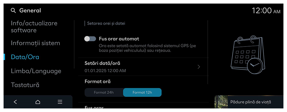 Ora este setată automat folosind sistemul GPS (pe baza poziției vehiculului) sau rețeaua.