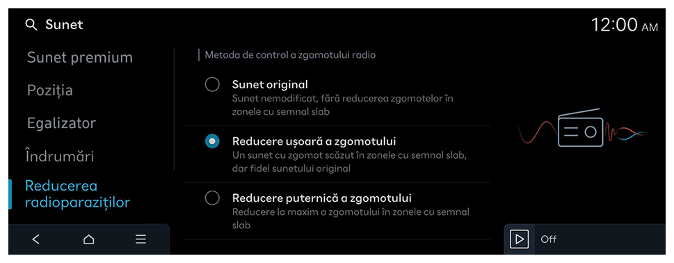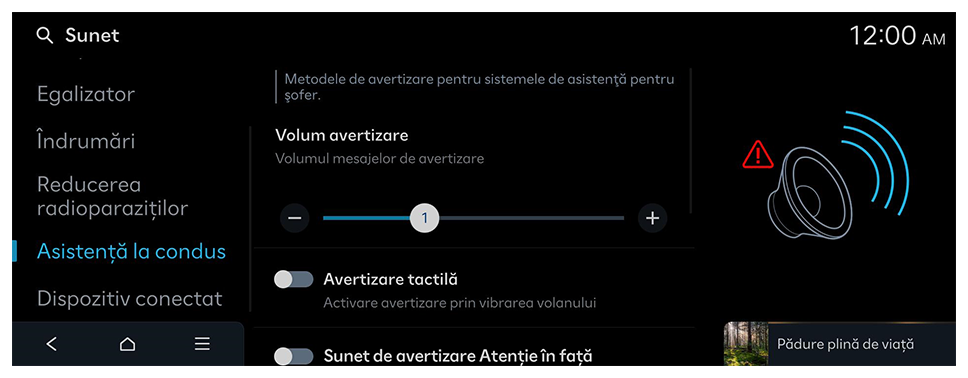 Activarea avertizării acustice privind siguranța pe bandă. Avertizarea acustică nu poate fi dezactivată dacă avertizarea tactilă este oprită.