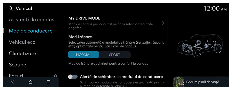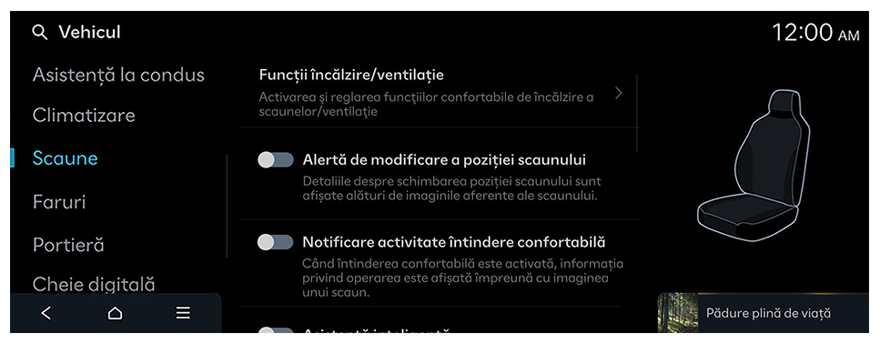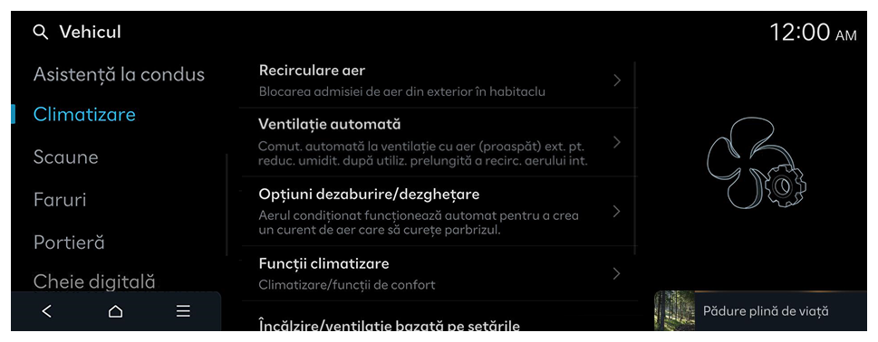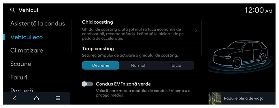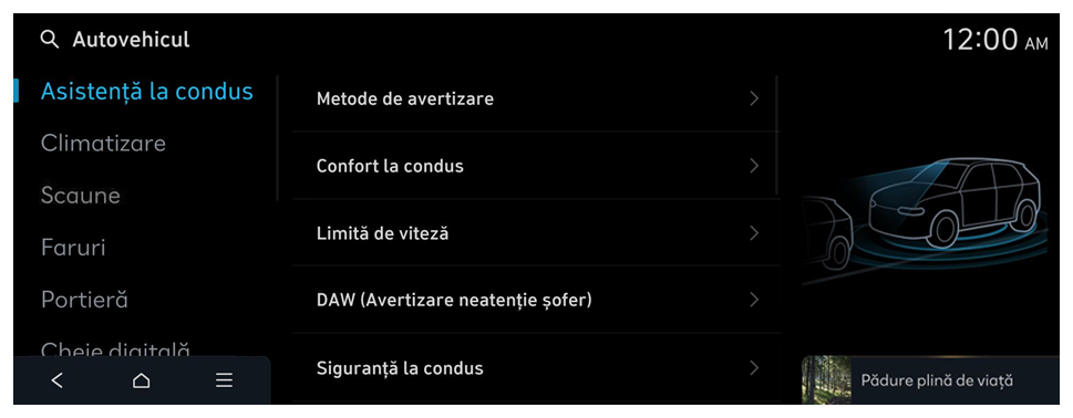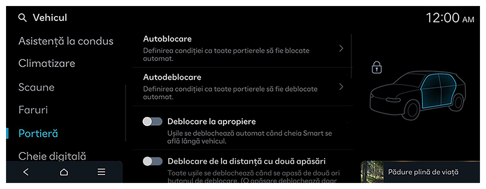 - Setările disponibile pot varia în funcție de modelul și specificațiile vehiculului.