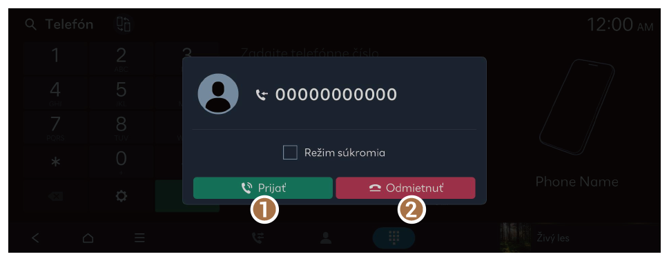 - Ak chcete hovor prijať, stlačte tlačidlo Prijať na obrazovke alebo stlačte tlačidlo hovoru na volante.
