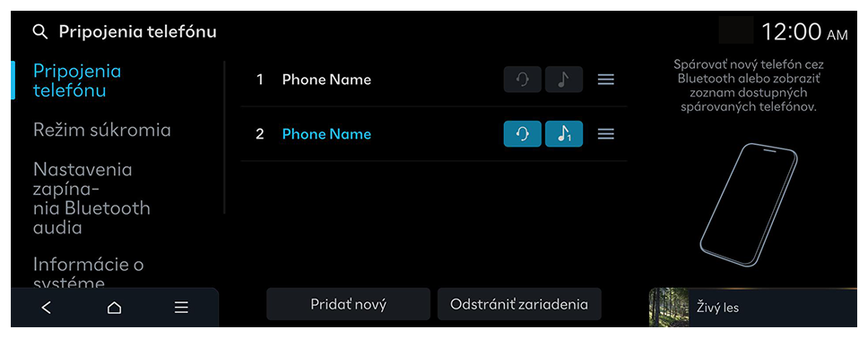 - Na domovskej obrazovke prejdite na položky Nastavenia ► Pripojenia telefónu ► Pripojenia telefónu ► Pridať nový.