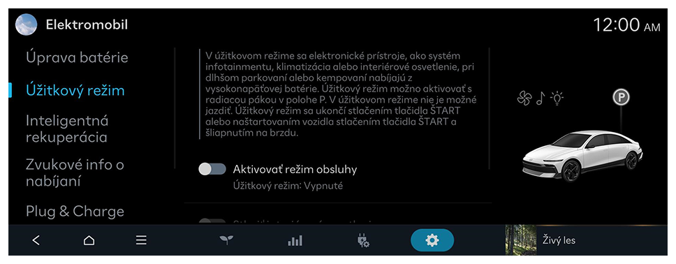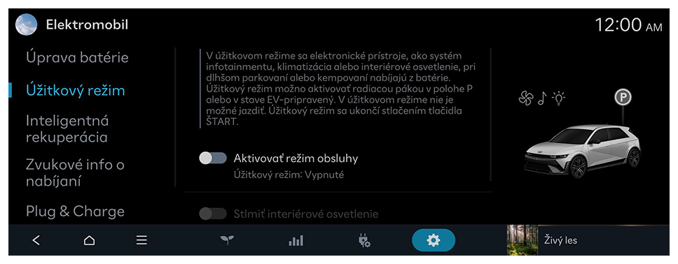 Zobrazí sa obrazovka s nastaveniami elektrického vozidla.