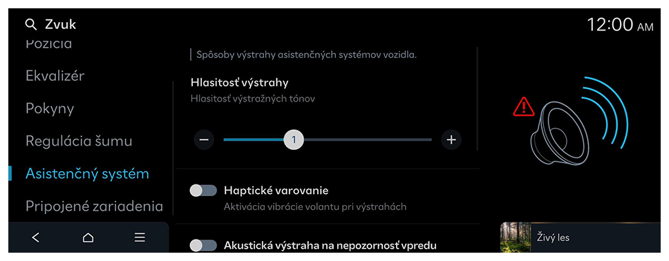 Zapínanie a vypínanie akustickej výstrahy na nepozornosť vpredu
