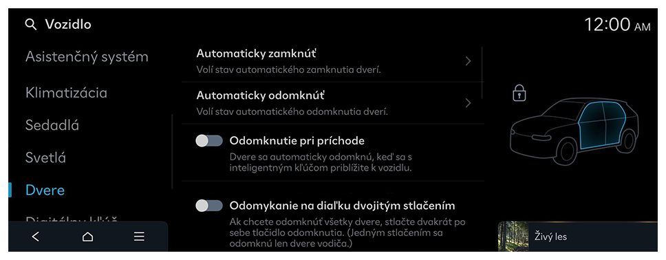 Môžete nakonfigurovať prevádzkové prostredie kufra a dverí.