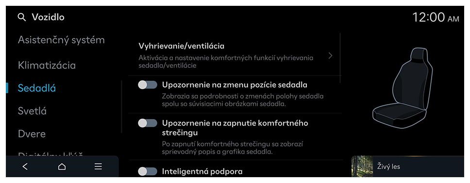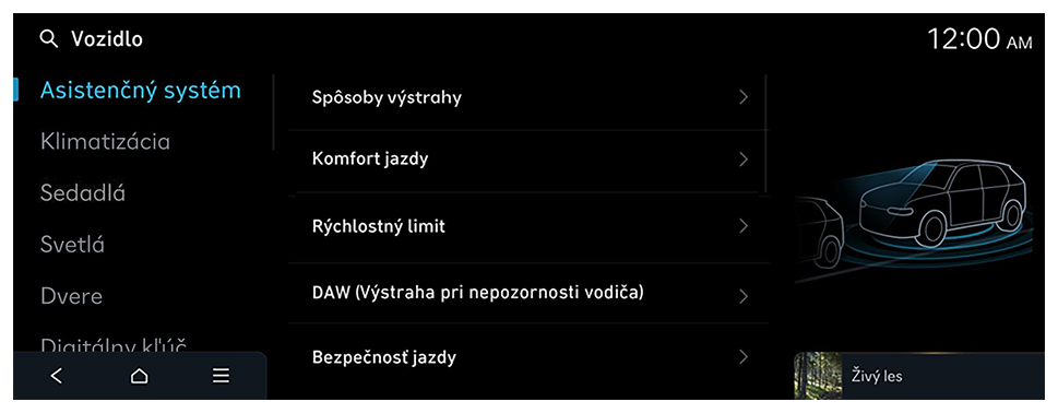- Dostupné nastavenia sa môžu líšiť v závislosti od modelu alebo technických parametrov vozidla.