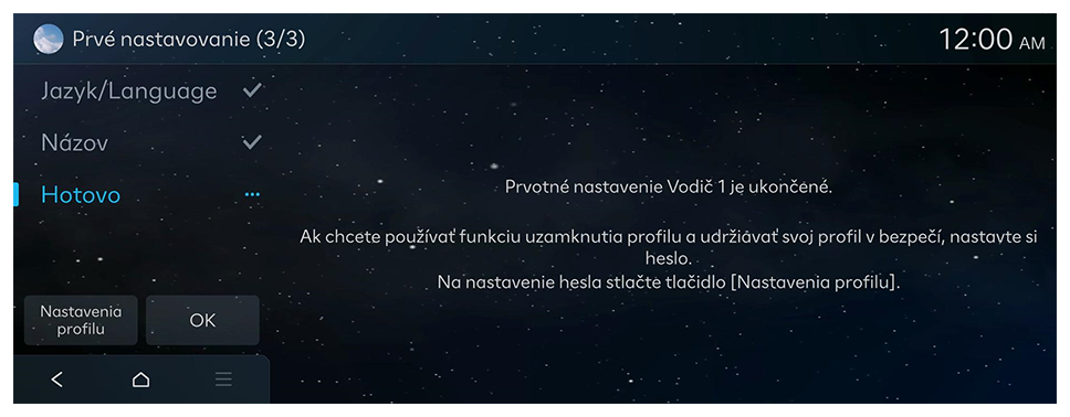 Na prístup k personalizovanej službe je potrebné vytvoriť profil používateľa. Ak ešte nemáte vytvorený profil používateľa, postupujte podľa nasledujúcich pokynov, aby ste si vytvorili profil používateľa a synchronizovali ho s účtom Bluelink a účtom používateľa vozidla pred použitím personalizovanej služby.