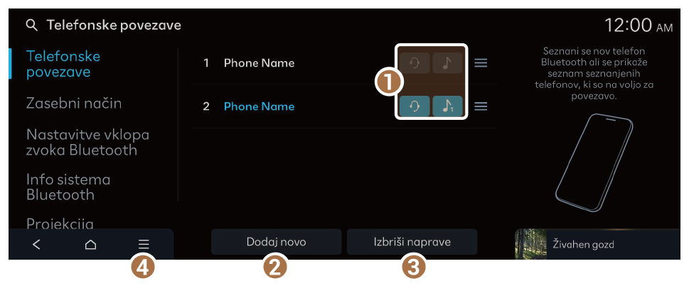 - Dostop do podatkov je mogoče omogočiti ali onemogočiti v meniju nastavitev Bluetooth na mobilnem telefonu. Obrnite se na navodila za uporabo mobilnega telefona.