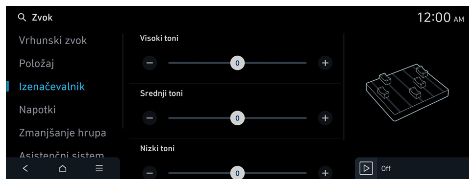Izklop zvočnega opozorila varnosti voznega pasu
