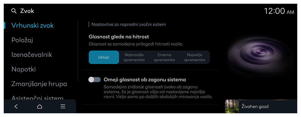 Zvočno opozorilo za omejitev hitrosti (če je del opreme)