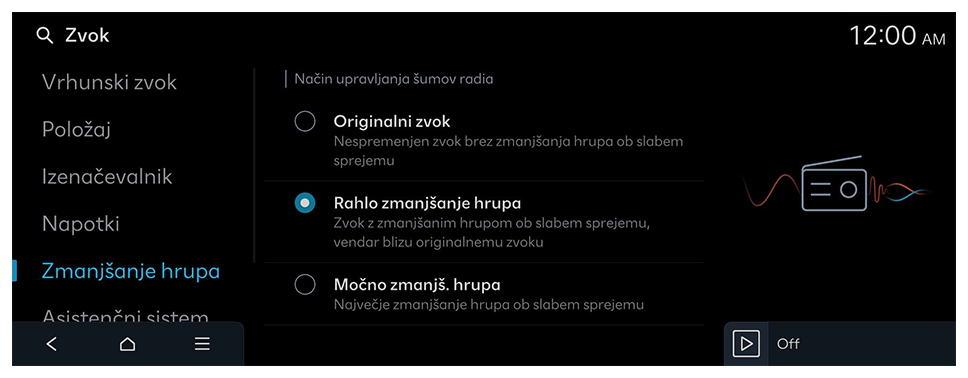Znižanje glasnosti zvokov ob vklopljenem prikazu asistemčnega sistema za pomoč pri parkiranju.
