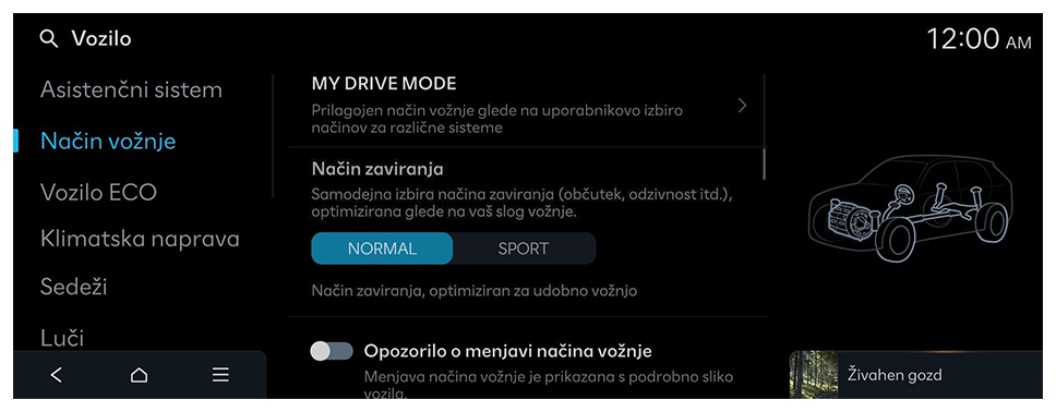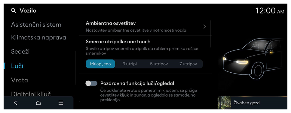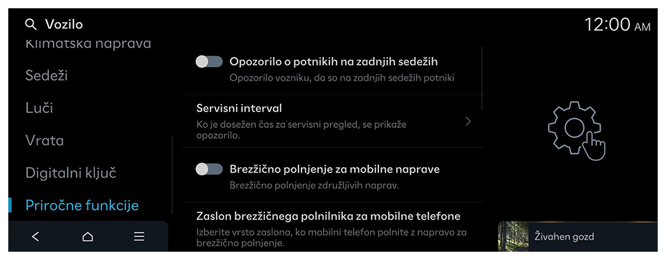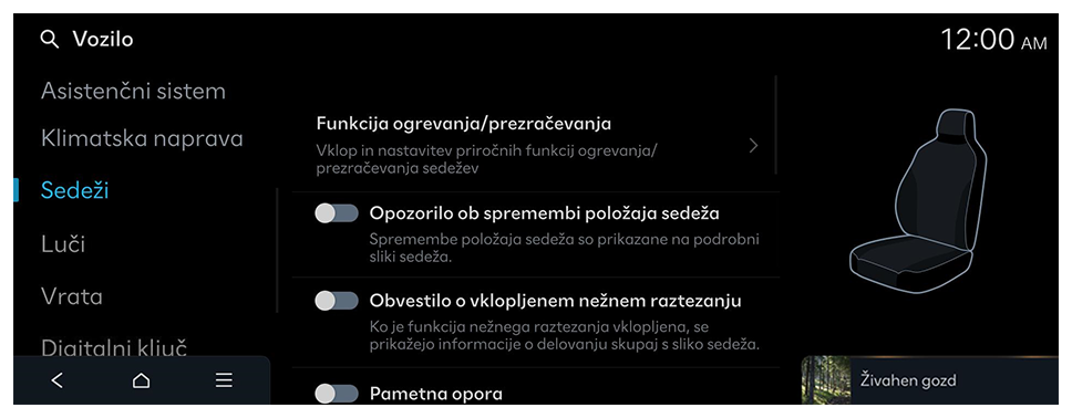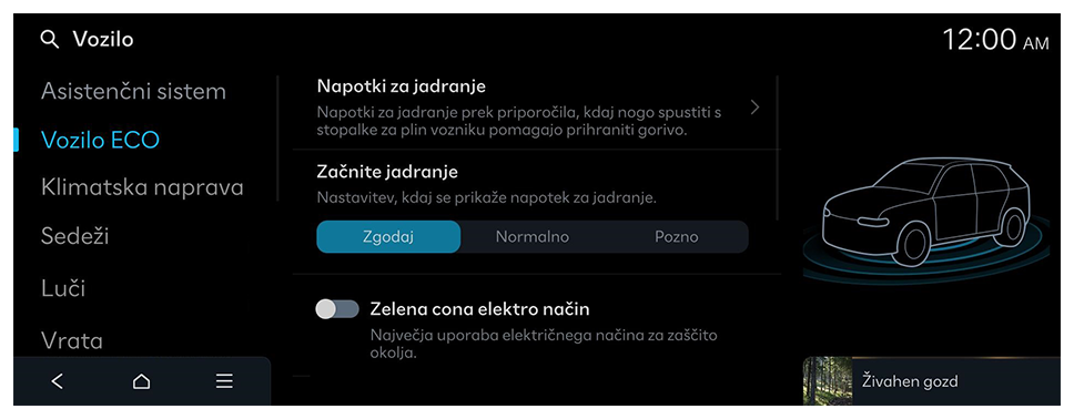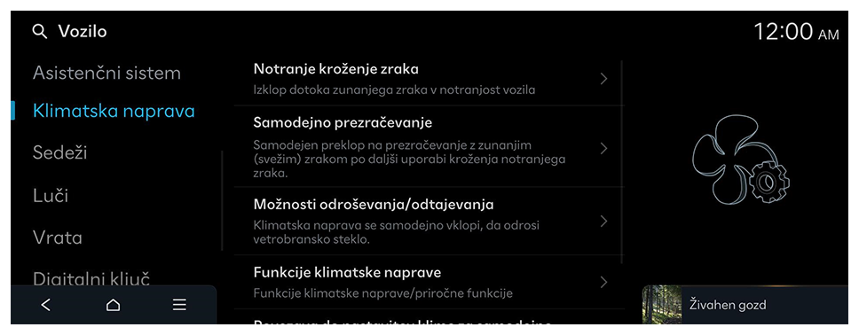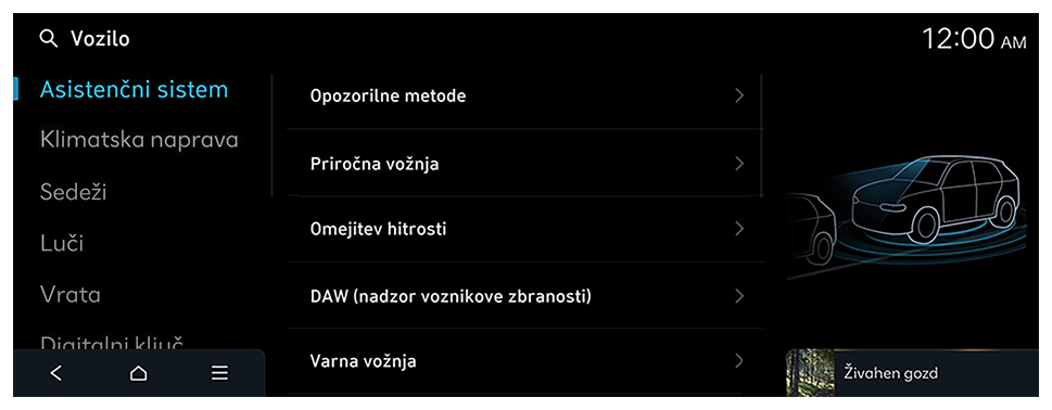 - Razpoložljive nastavitve se morda razlikujejo, odvisno od modela vozila in specifikacij.