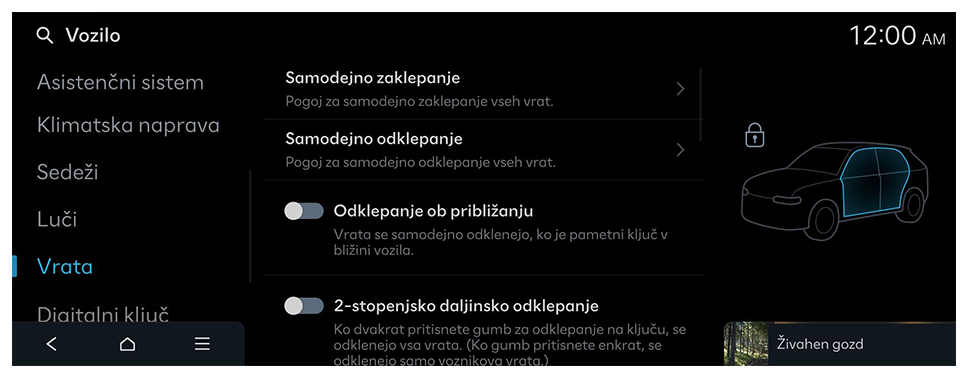 Prilagodite lahko okolje delovanja za prtljažnik in vrata.