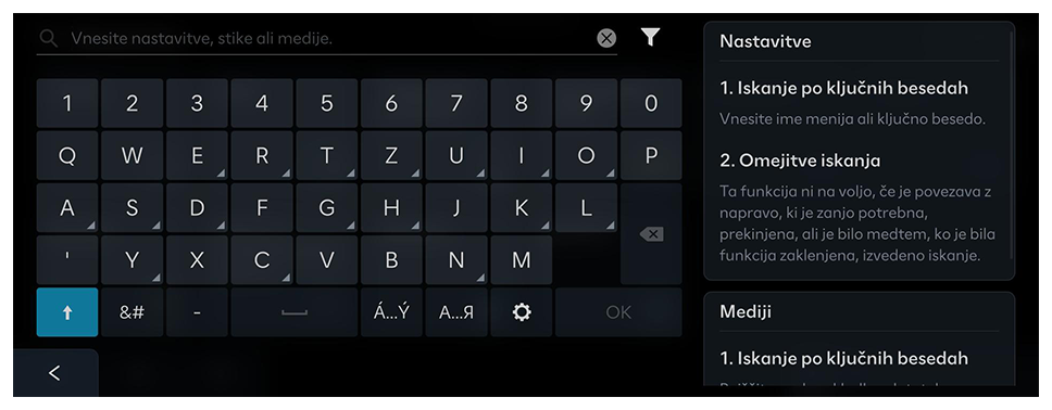 , če je ikona prikazana na zaslonu. - Rezultati iskanja so podani zaporedno na podlagi sestave podanega menija in informacij v različnih načinih.