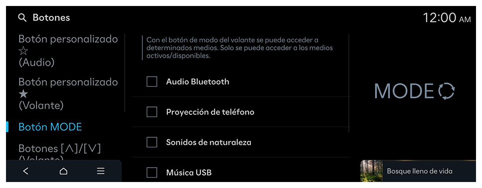 Configure las funciones que desee que se activen al pulsar los botones del panel de control o del volante.