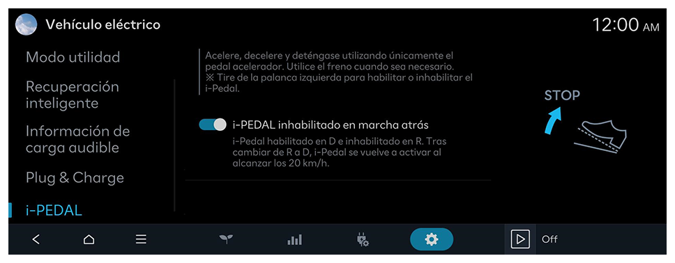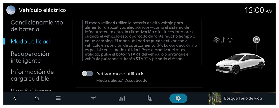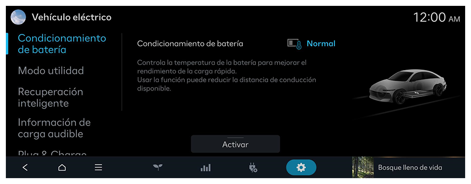 Aparece la pantalla de ajustes del vehículo eléctrico.