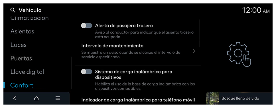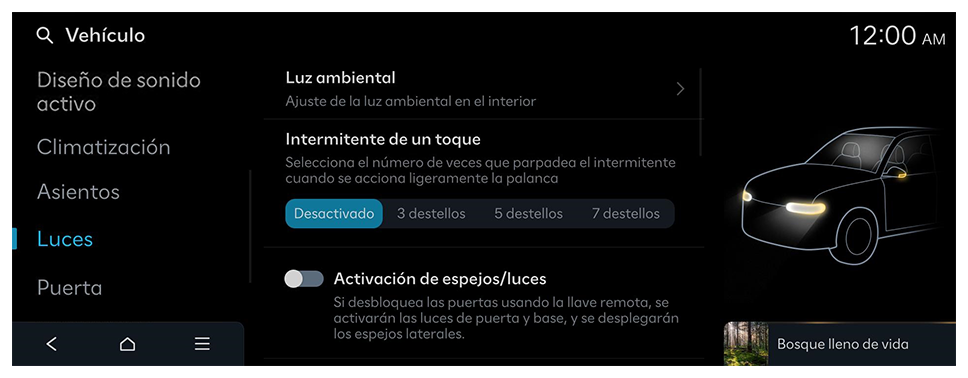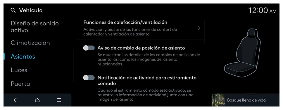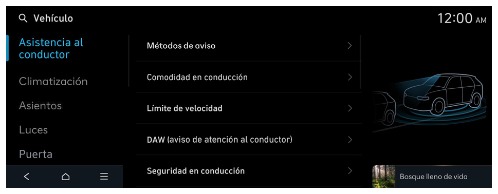 - Los ajustes disponibles pueden variar en función del modelo y las especificaciones del vehículo.