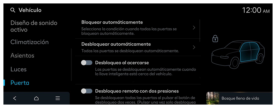Seleccione las puertas a desbloquear cuando el conductor se acerca al vehículo con la llave inteligente o presiona el botón de manija.