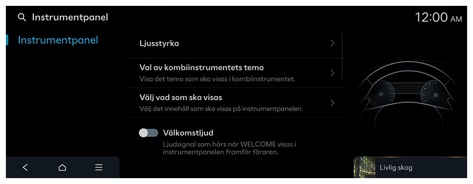 - På hemskärmen trycker du på Inställningar ► Instrumentpanel.