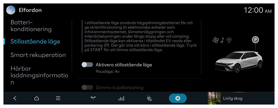 Du kan ställa in bekvämlighetsfunktioner för elfordon.
