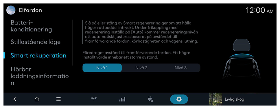- På hemskärmen trycker du på Inställningar ► Elfordon.
