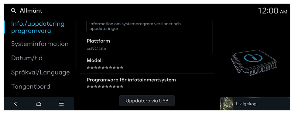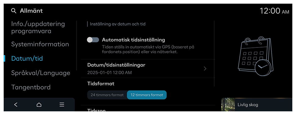 Tiden ställs in automatiskt via GPS (baserat på fordonets position) eller via nätverket.