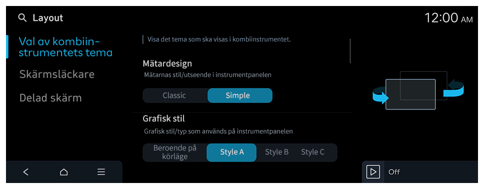 - Tillgängliga inställningar kan variera beroende på fordonsmodell och specifikationer.