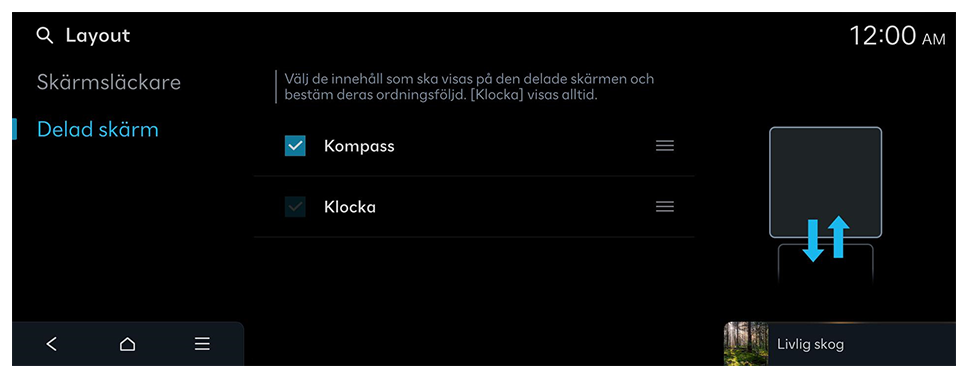 Konfigurera inställningar för skärmen och för delade skärmar.
