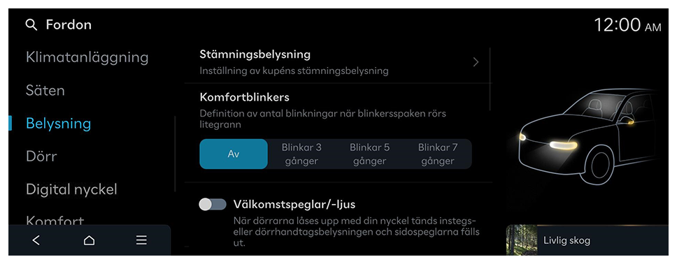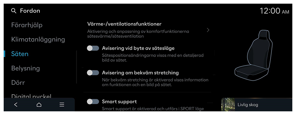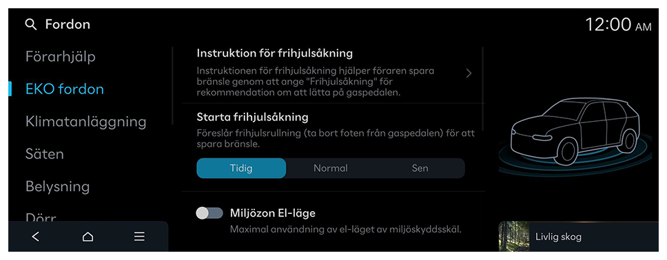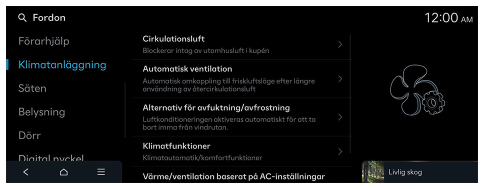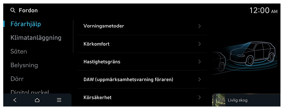 - Tillgängliga inställningar kan variera beroende på fordonsmodell och specifikationer.