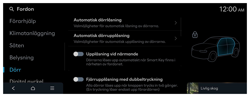 Välj vilka dörrar som ska låsas upp när föraren närmar sig fordonet med sin Smart Key eller när knappen på dörrhandtaget trycks in.