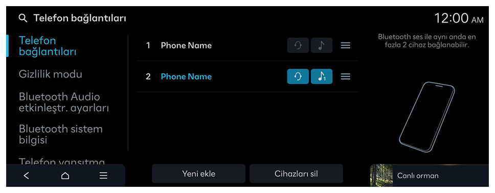 - Apple CarPlay'i kapatmak için sistem ekranında cihaz bağlantı sayfasından kablosuz bağlantıyı kapatın.