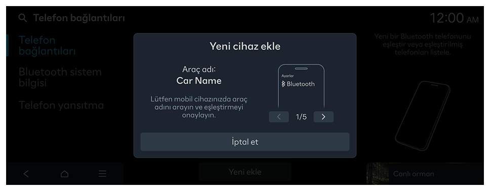 - Bağlanacak iPhone'da Wi-Fi ve Bluetooth özelliğini açın ve aranan Bluetooth cihazları listesinden araç sistemini seçin.