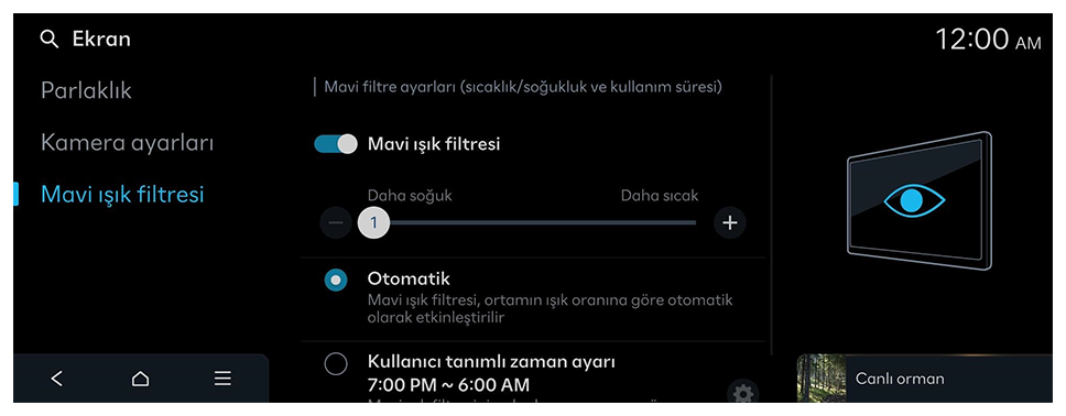 Ekran parlaklığının otomatik olarak çevrenin aydınlık düzeyine uyarlanması.