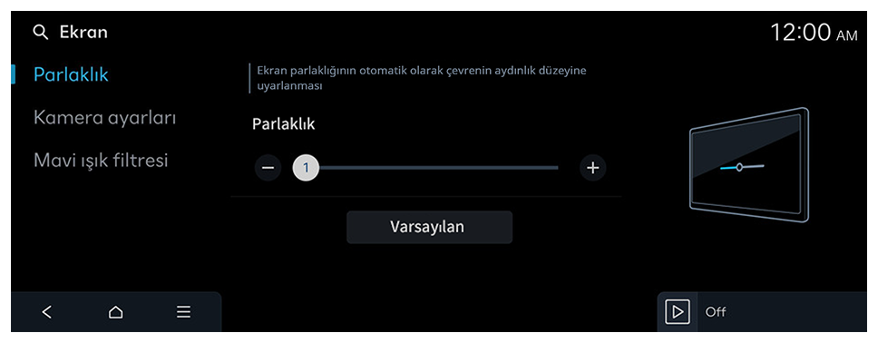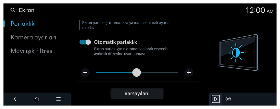 - Tüm ekran parlaklığı ayarlarını varsayılan değerlere sıfırlamak için Varsayılan öğesine basın.