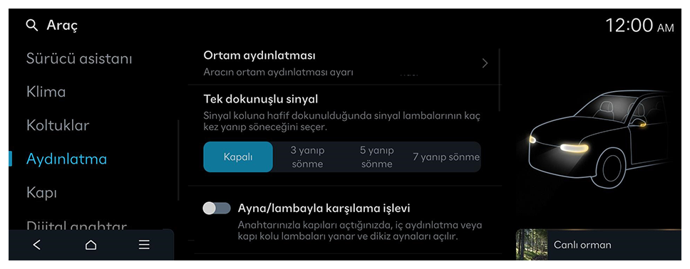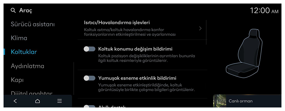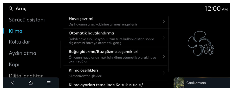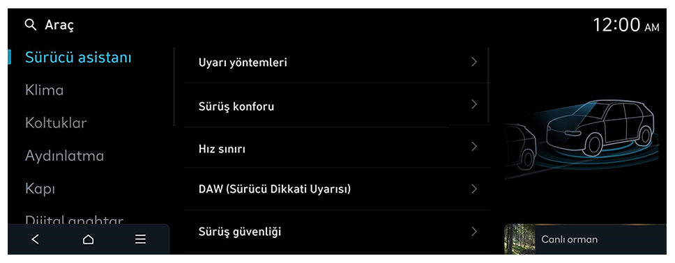 - Kullanılabilen ayarlar, araç modeline ve teknik özelliklere bağlı olarak değişebilir.