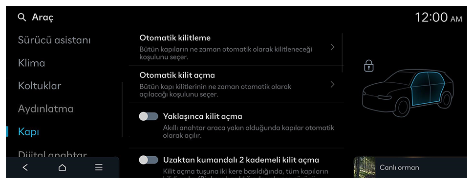 Sürücü, Smart Key ile araca yaklaştığında veya kapı kolu düğmesine bastığında kilidi açılacak olan kapıları seçin.