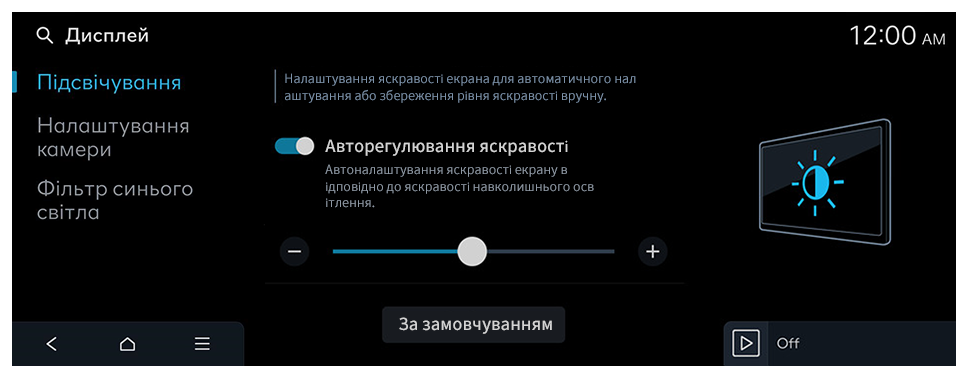 - Щоб скинути всі налаштування яскравості екрана до початкових значень, натисніть За замовчуванням.