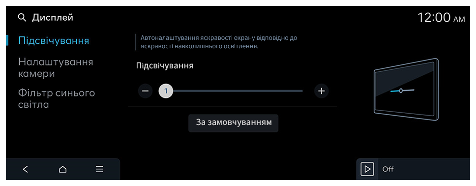 - Доступні налаштування можуть відрізнятися залежно від моделі автомобіля та комплектації.