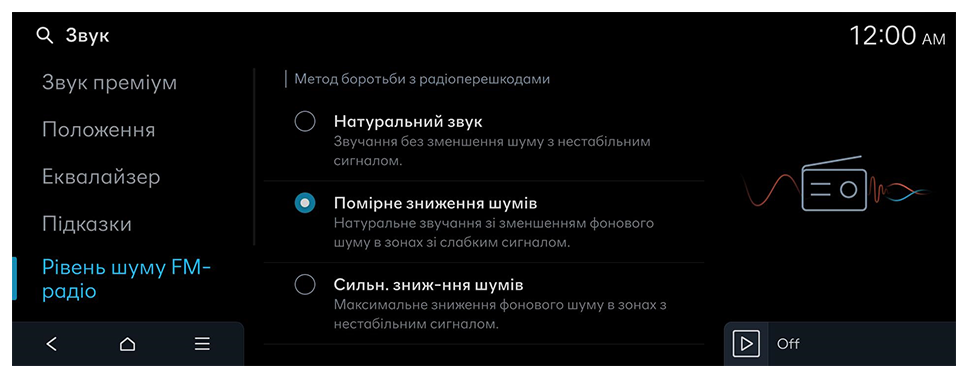 Активація звукового попередження про безпеку руху по смузі. Звукове попередження не можна деактивувати, якщо гаптичне попередження вимкнене.
