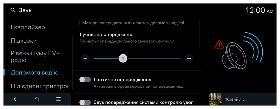 Зниження гучності інших звуків, коли лунає попередження системи безпечного руху.