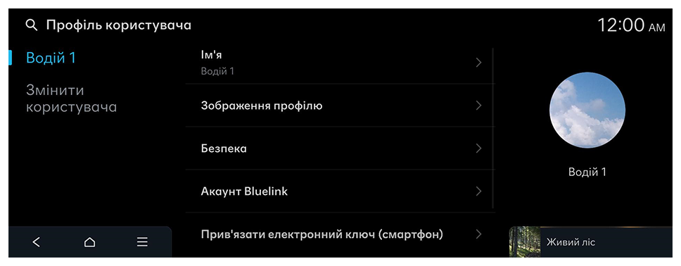- На головному екрані натисніть Налаштування ► Профіль користувача.