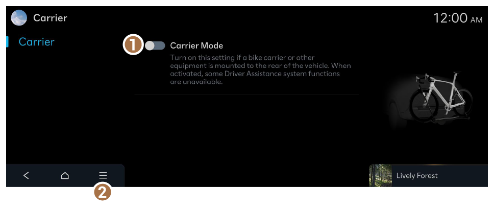 - Turn on this setting if a bike carrier or other equipment is mounted to the rear of the vehicle. When activated, some Driver Assistance system functions are unavailable.
