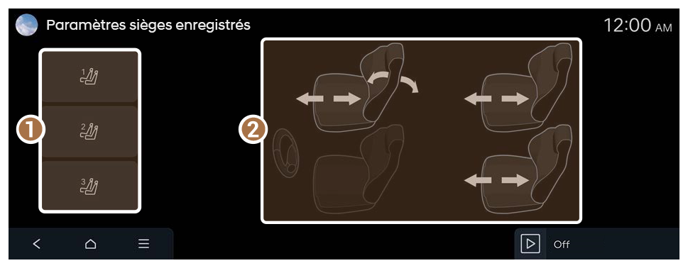 Depuis l’écran d’accueil, appuyez sur Sièges.