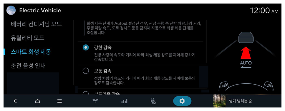 - 홈 화면에서 설정 ► Electric Vehicle을 누르세요.