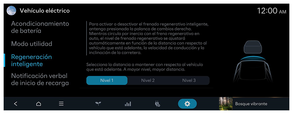 Aparecerá la pantalla de ajustes del vehículo eléctrico.