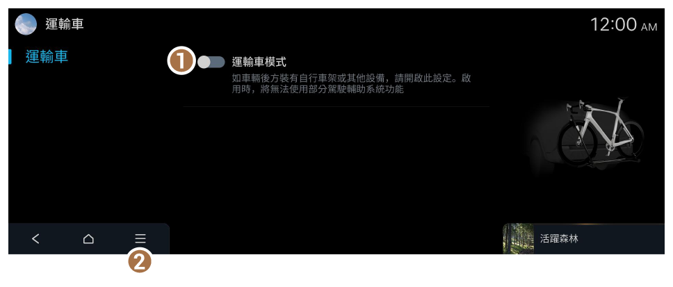 開啟或關閉運輸車模式。